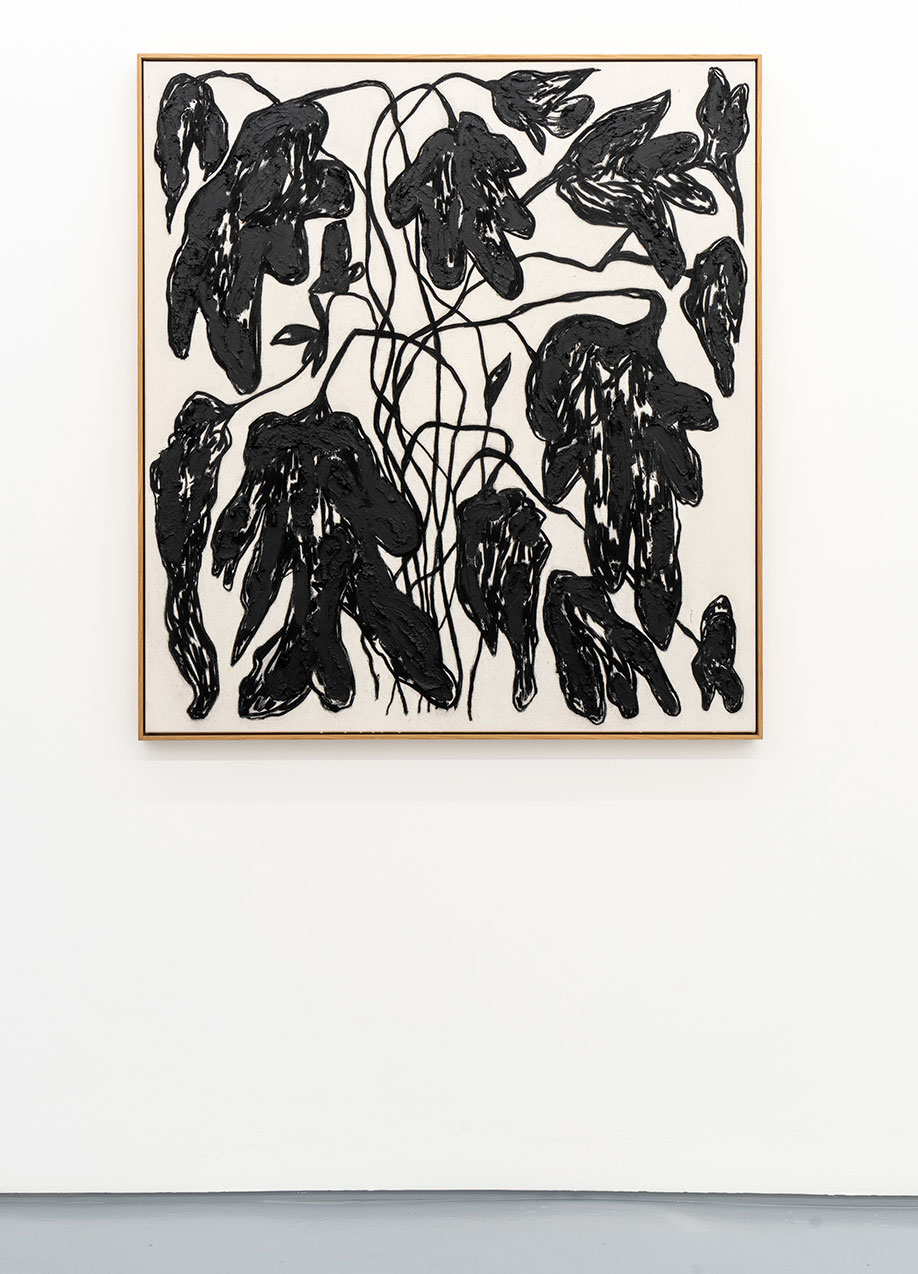 <b>Title: </b>BODGER’S HOVEL (UNTITLED) 002<br /><b>Year: </b>2022<br /><b>Medium: </b>Oil, wax and charcoal on canvas with oak frame<br /><b>Size: </b>187.5 x 157.5 cm